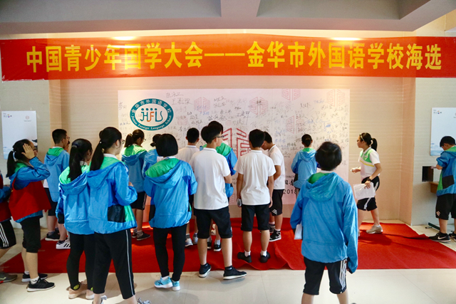 近日,“中國青少年國學(xué)大會(huì)”金華市外國語學(xué)校海選在金外初中部舉行。“中國青少年國學(xué)大會(huì)”是一個(gè)首次跨越六個(gè)年級(jí)的國學(xué)大賽場(chǎng),分為海選、復(fù)賽以及全國總決賽三大階段。本次比賽采取班班組組對(duì)抗制,包含古文、詩詞、國學(xué)經(jīng)典、國藝、民俗、民風(fēng)等內(nèi)容,全校共有兩百余名選手參賽,展現(xiàn)國學(xué)知識(shí)涵養(yǎng)。