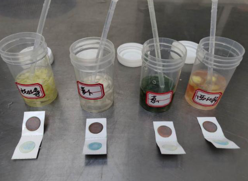,檢測試紙均呈現(xiàn)為藍色,結果為陰性,意味著本次抽取的蔬果都未測出農(nóng)藥殘留。